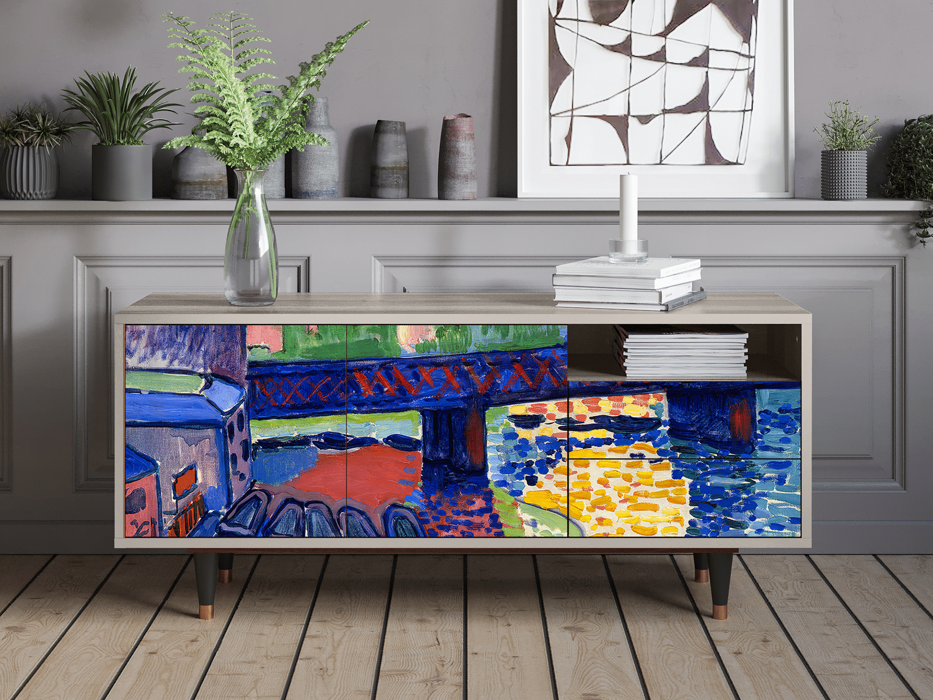 A balance between compact and oversized. Say “yes” to T7 if you need a TV stand with room for all the essentials, without overwhelming your space. Its optimal size makes it functional and stylish, while leaving plenty of room for everything else.