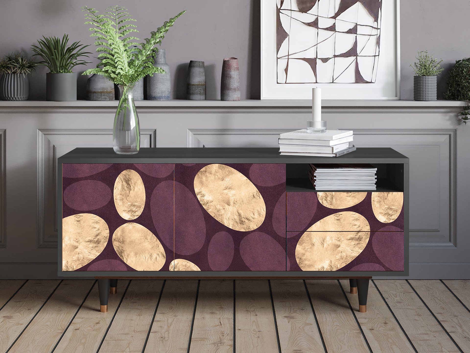 A balance between compact and oversized. Say “yes” to T7 if you need a TV stand with room for all the essentials, without overwhelming your space. Its optimal size makes it functional and stylish, while leaving plenty of room for everything else.