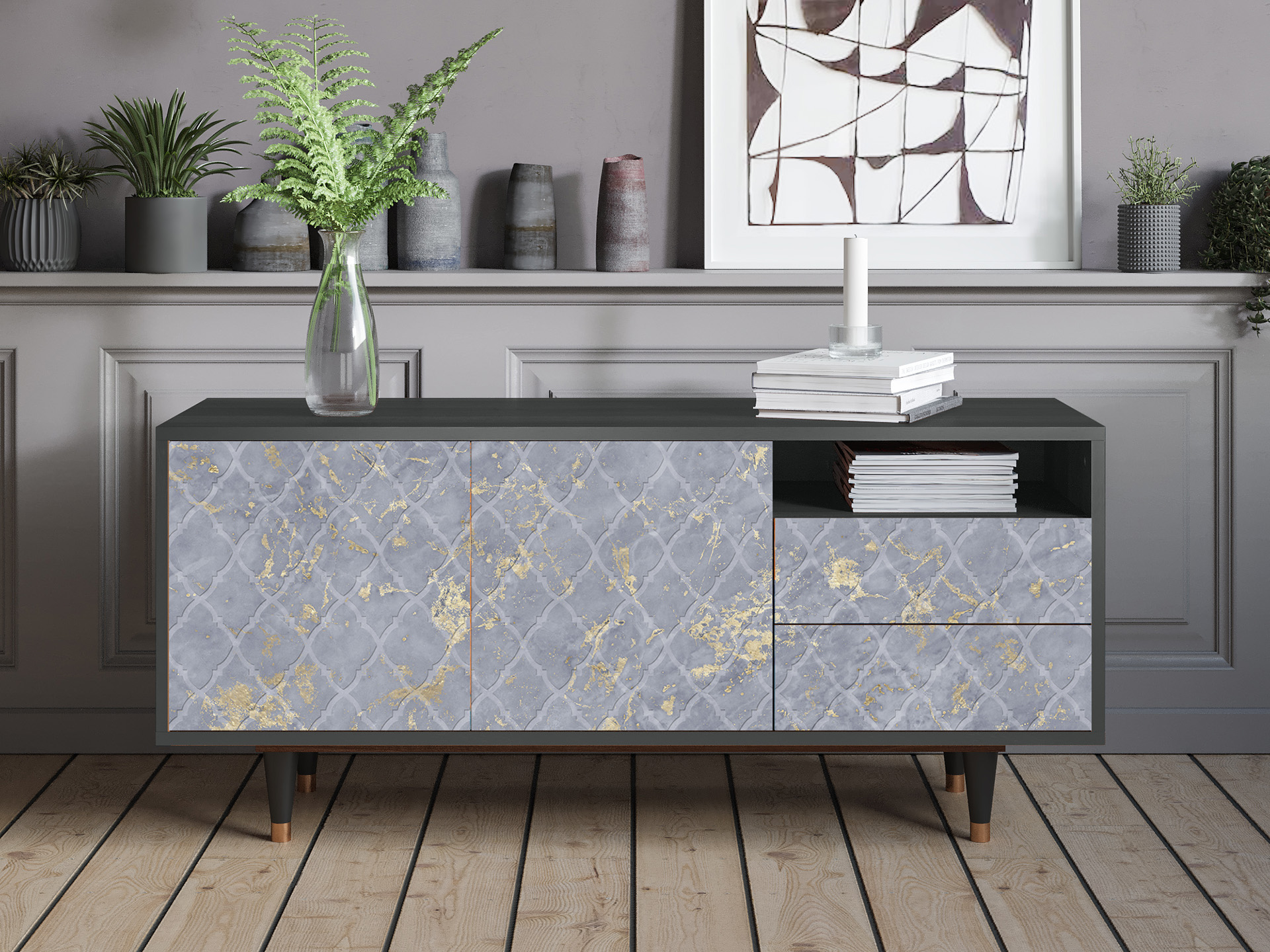 A balance between compact and oversized. Say “yes” to T7 if you need a TV stand with room for all the essentials, without overwhelming your space. Its optimal size makes it functional and stylish, while leaving plenty of room for everything else.
