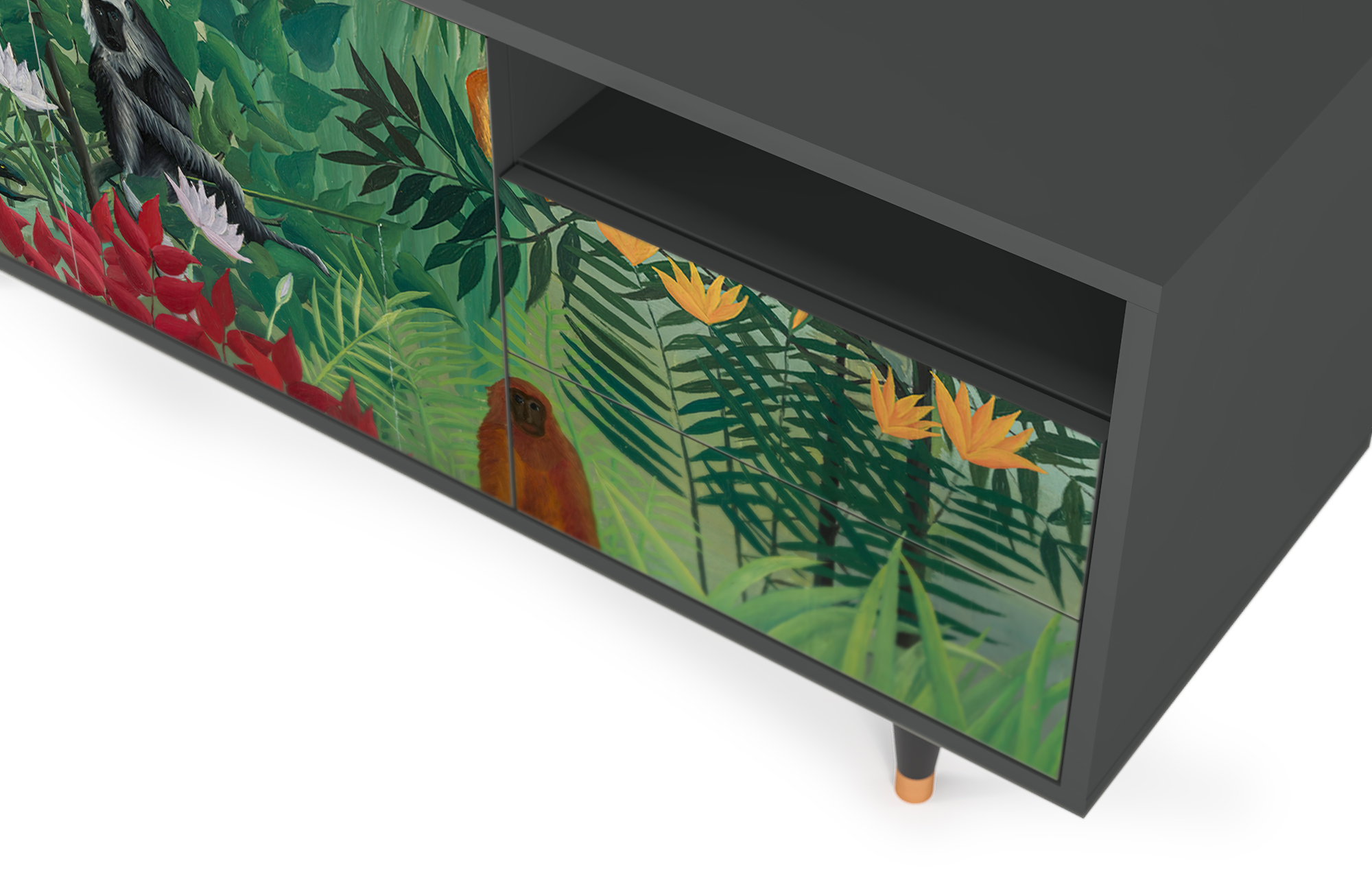 A balance between compact and oversized. Say “yes” to T7 if you need a TV stand with room for all the essentials, without overwhelming your space. Its optimal size makes it functional and stylish, while leaving plenty of room for everything else.