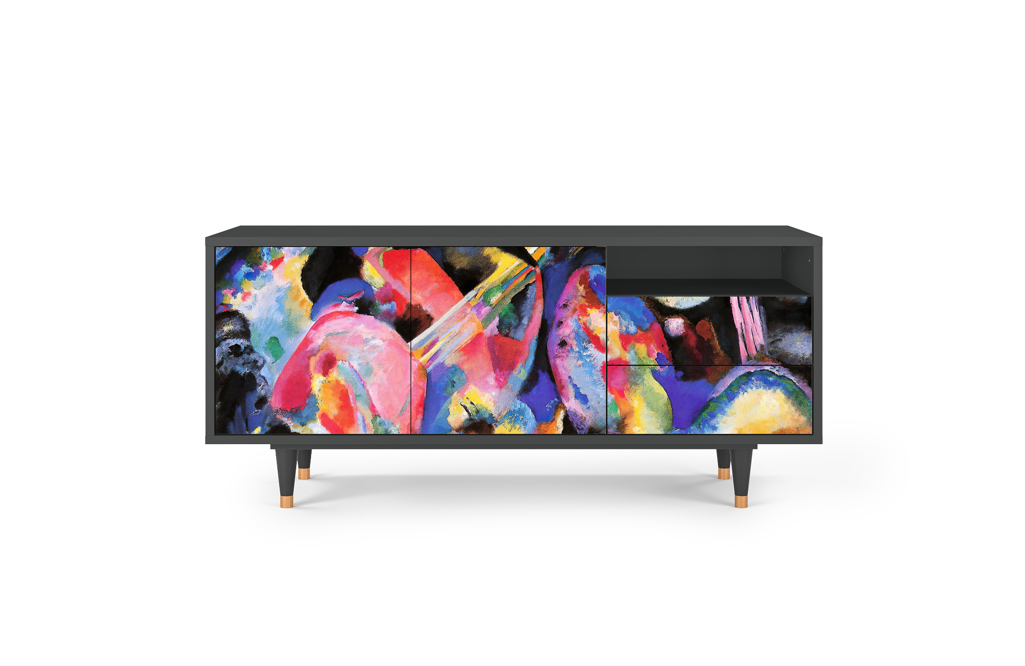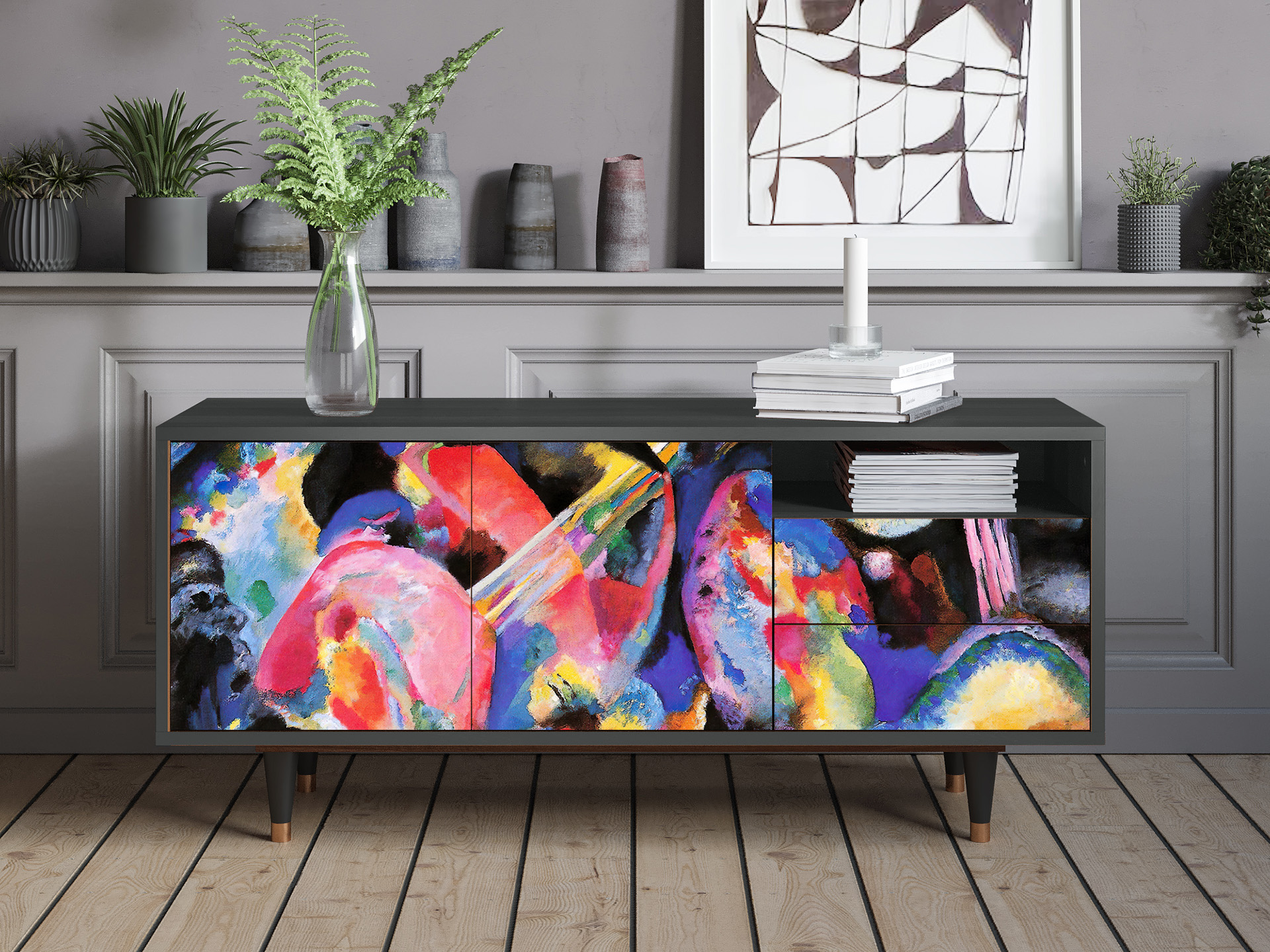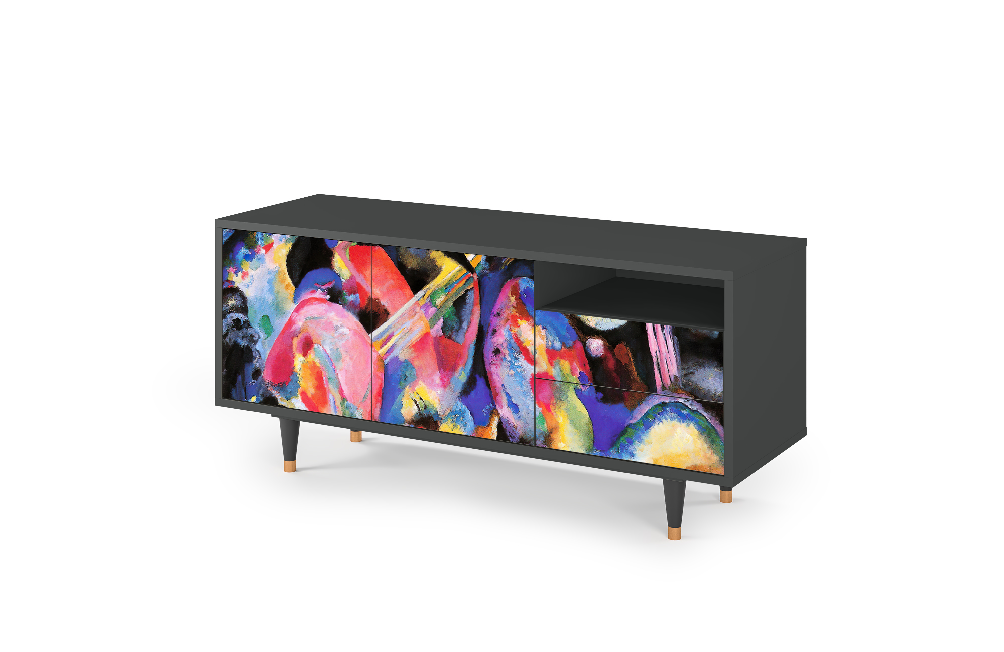 A balance between compact and oversized. Say “yes” to T7 if you need a TV stand with room for all the essentials, without overwhelming your space. Its optimal size makes it functional and stylish, while leaving plenty of room for everything else.