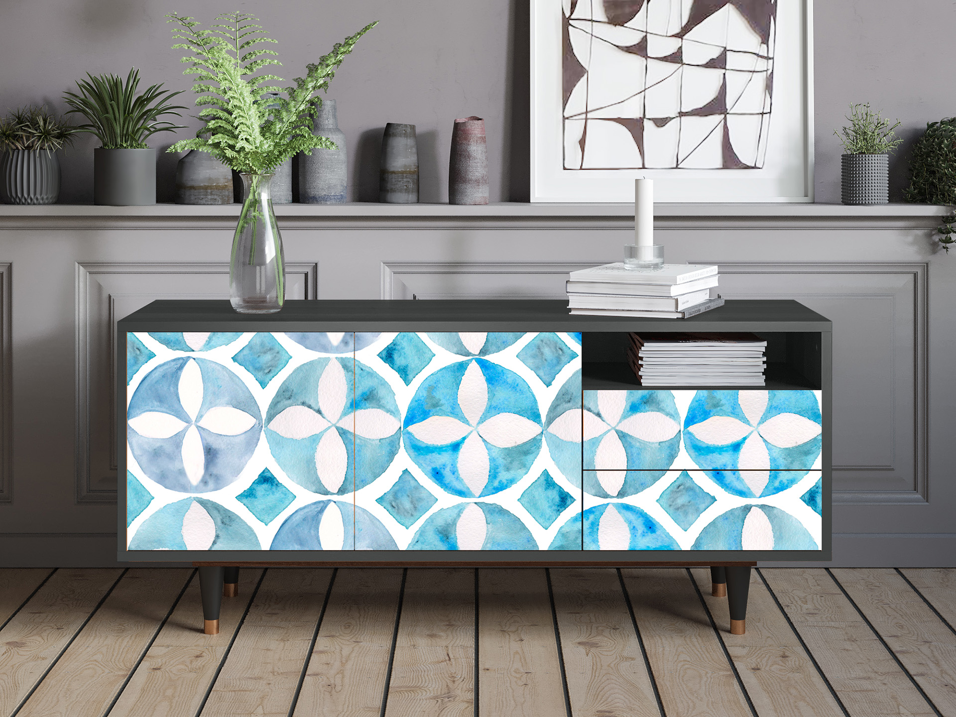 A balance between compact and oversized. Say “yes” to T7 if you need a TV stand with room for all the essentials, without overwhelming your space. Its optimal size makes it functional and stylish, while leaving plenty of room for everything else.