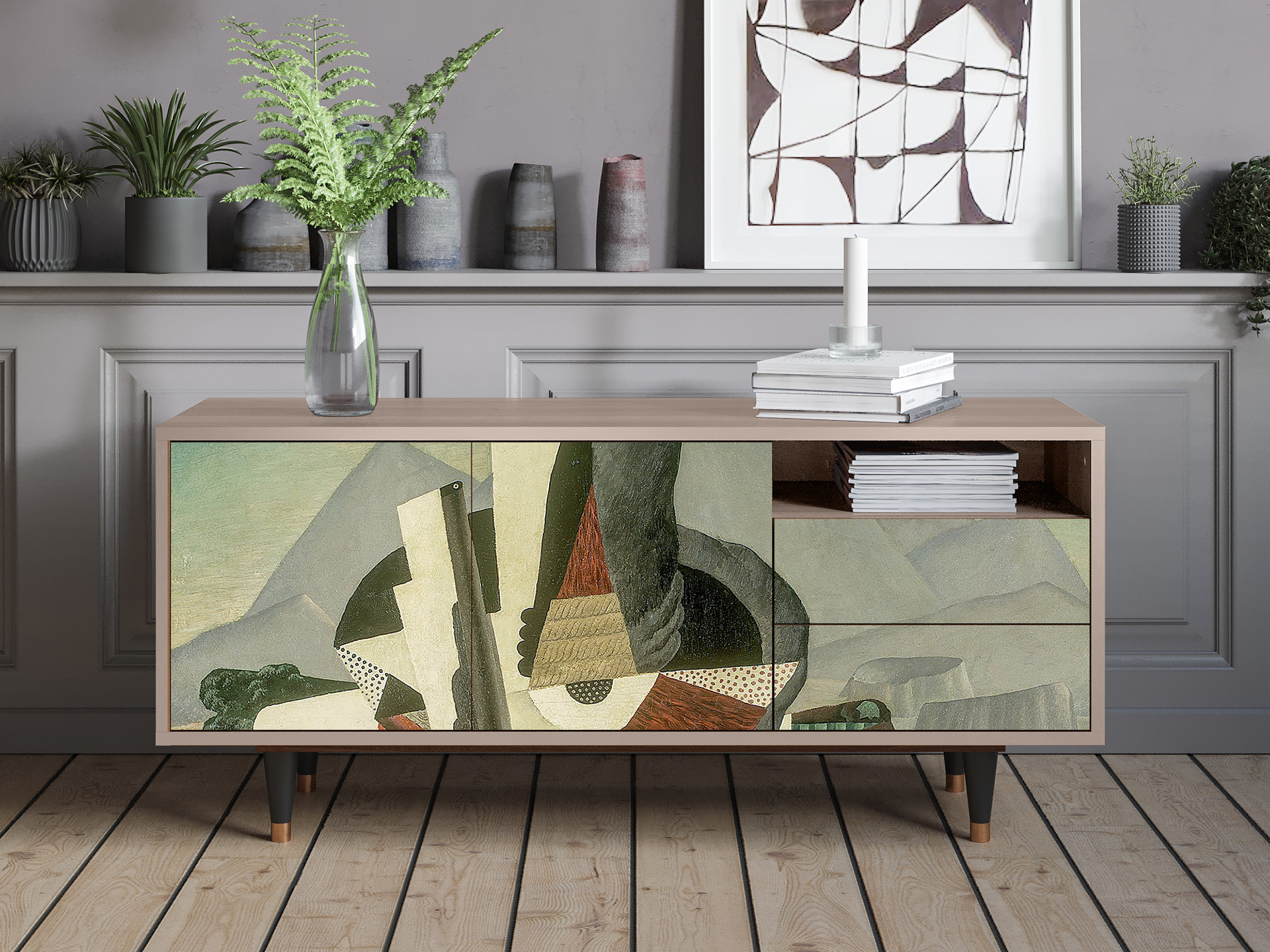 A balance between compact and oversized. Say “yes” to T7 if you need a TV stand with room for all the essentials, without overwhelming your space. Its optimal size makes it functional and stylish, while leaving plenty of room for everything else.