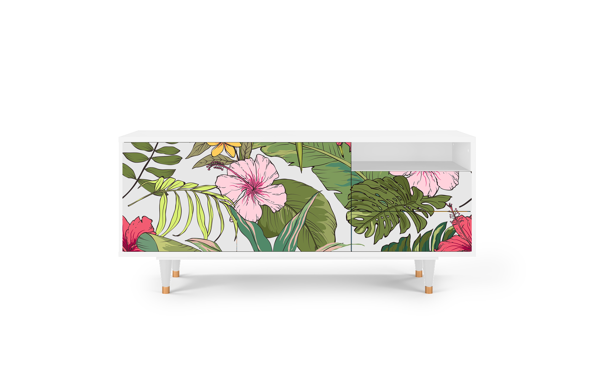 A balance between compact and oversized. Say “yes” to T7 if you need a TV stand with room for all the essentials, without overwhelming your space. Its optimal size makes it functional and stylish, while leaving plenty of room for everything else.